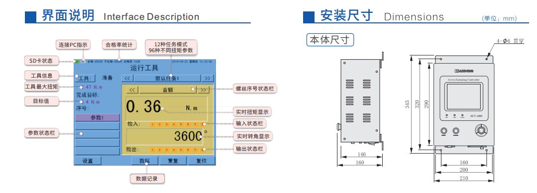 TFT-LCD可實(shí)現(xiàn)本機(jī)設(shè)置、編程及狀態(tài)的監(jiān)控與顯示 12種任務(wù)模式,可用于多種裝配需求 每個(gè)任務(wù)多達(dá)8種不同的扭矩參數(shù)設(shè)置 內(nèi)置伺服驅(qū)動(dòng)器,可提供扭矩、轉(zhuǎn)角監(jiān)控及減速擰緊等精密控制 提供用于流程控制的可編程10及系統(tǒng)擴(kuò)展組件 提供用于高級(jí)數(shù)據(jù)存儲(chǔ)及工廠控制交互的通訊接口 配有實(shí)體按鈕、LED指示燈等雙重操作及監(jiān)控寫能,以進(jìn)一步 提升控制器的可靠性 美觀緊湊的外形結(jié)構(gòu),方便靈活的安裝方式,適配于多種應(yīng)用場(chǎng)合重些聯(lián)系艾而特